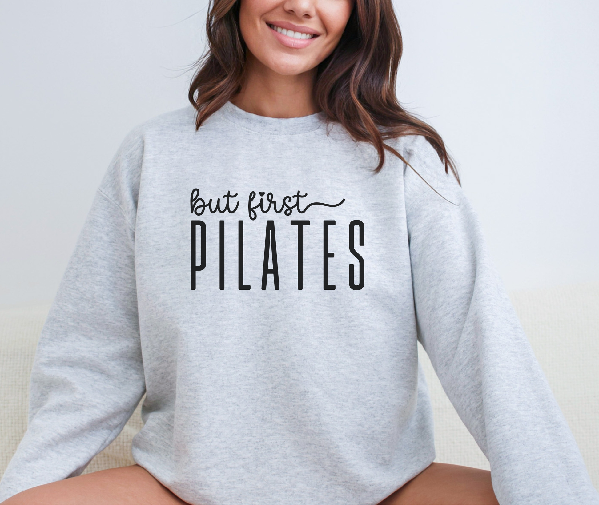 Cozy up in this But First, Pilates crewneck sweatshirt—perfect for pilates lovers, fitness instructors, and studio owners. This unisex pullover is a must-have for pilates apparel, making it great for gym boutiques and wellness shops. Crafted for comfort and style, it's ideal for layering before or after workouts. Stock your store with this trendy pilates sweatshirt today!