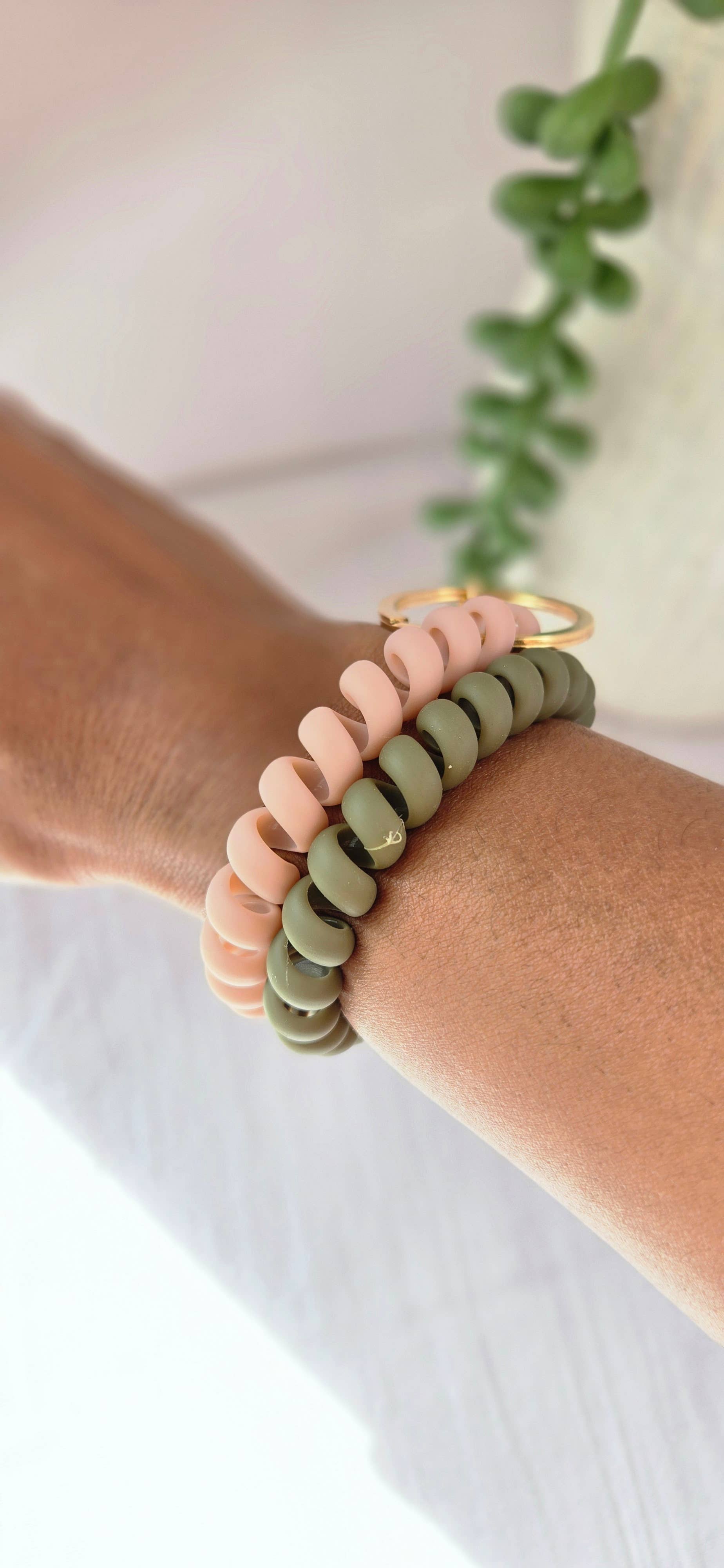Wristlet is a flexible PVC. Easy to clean and long-lasting.