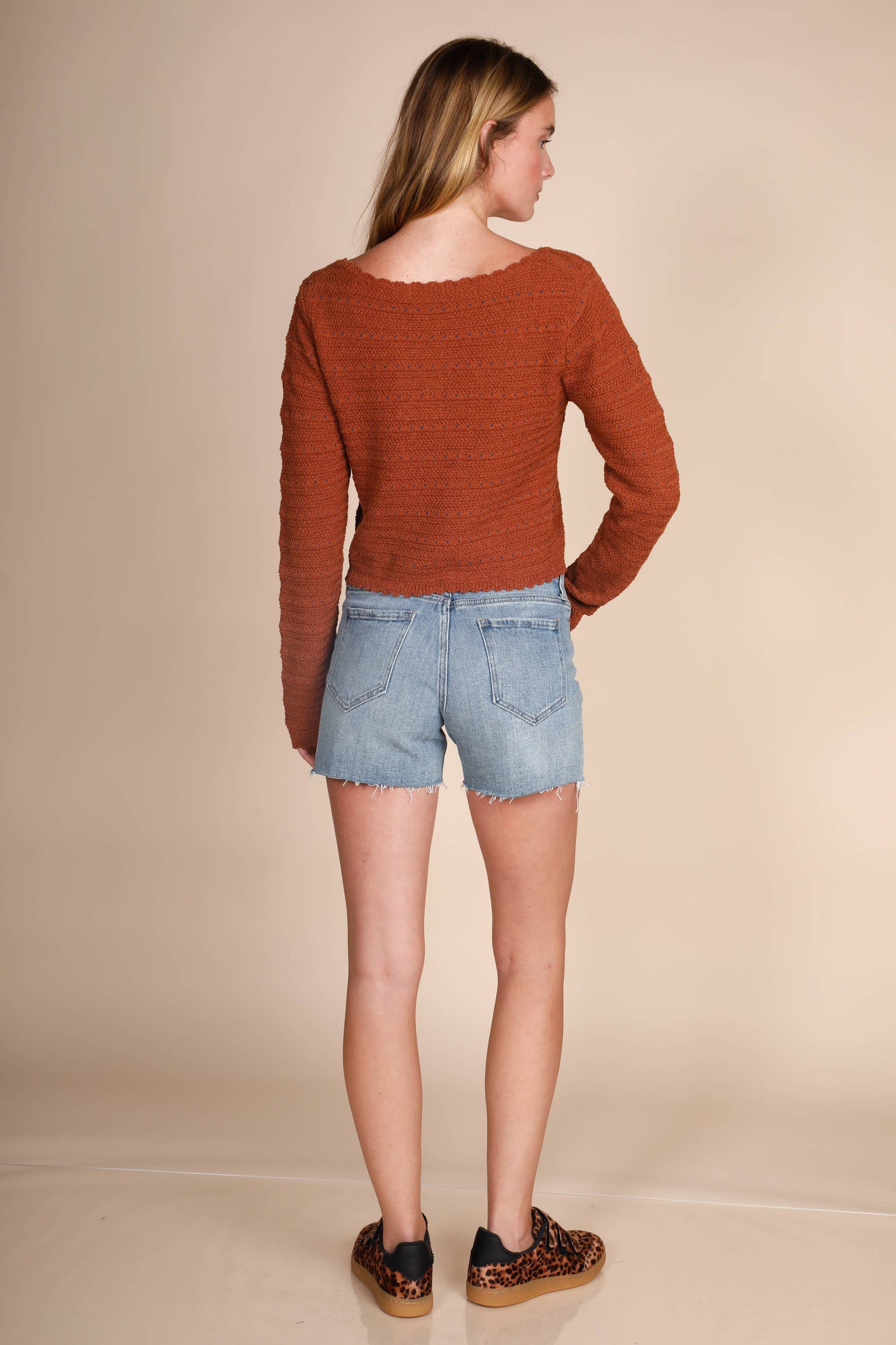 DEEP V KEY HOLE BOW TIE LONG SLV TOP: Brown / M