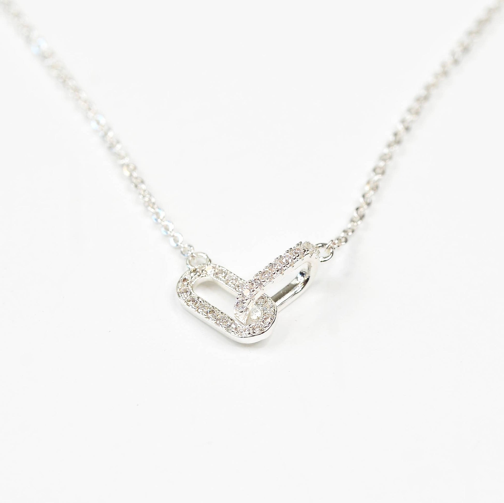 Diamond Linked Necklace, Chain Link Jewelry, Necklace: Silver