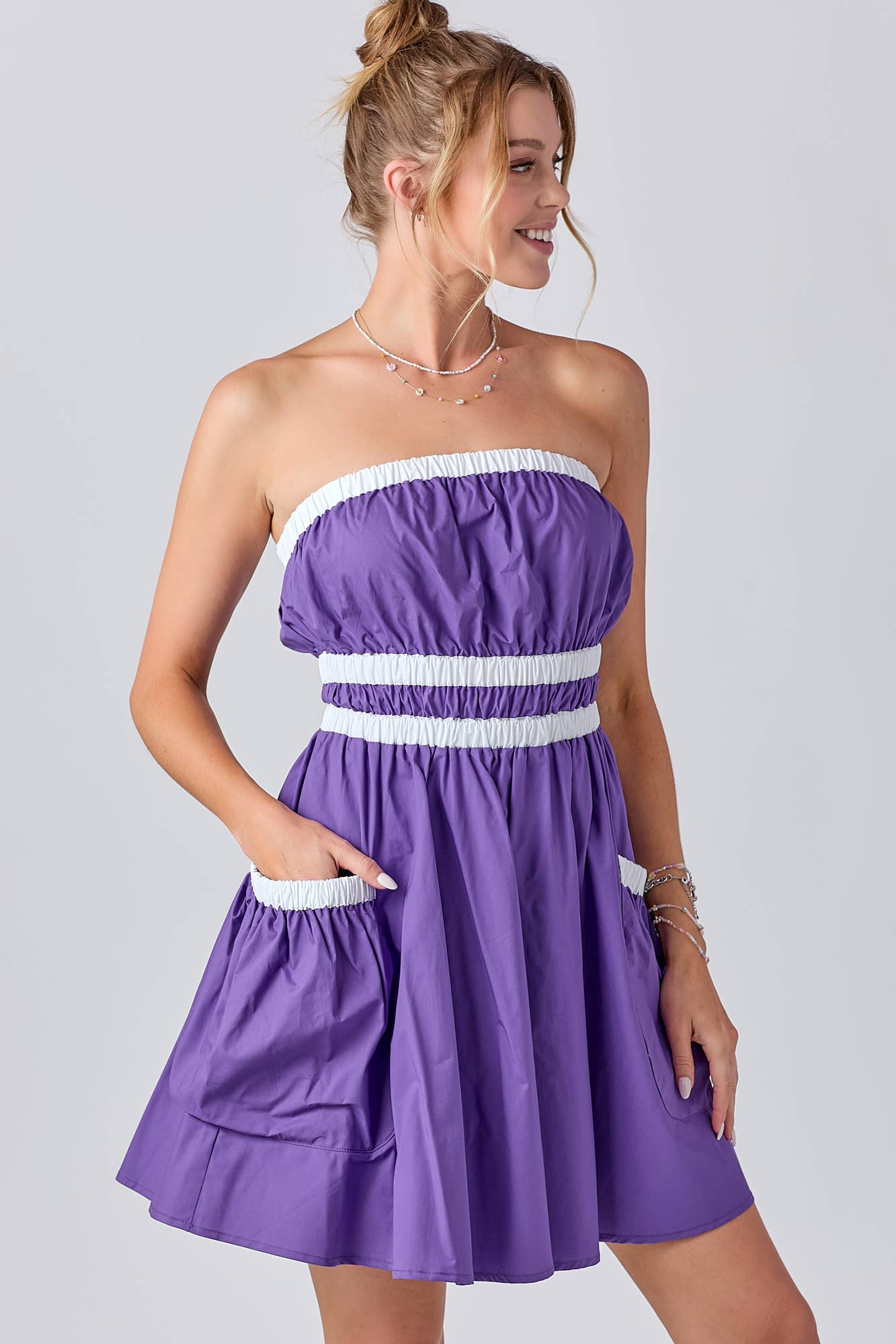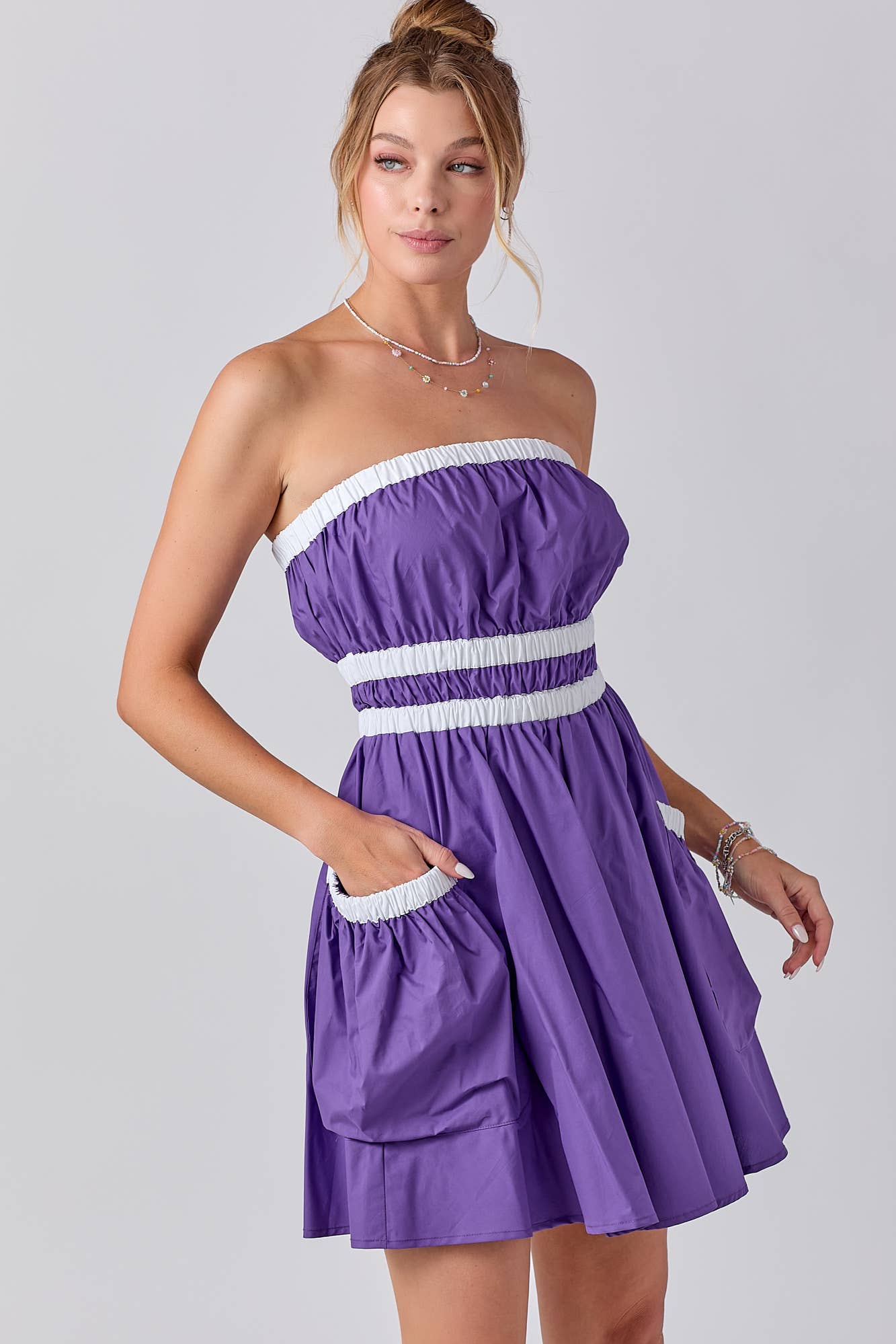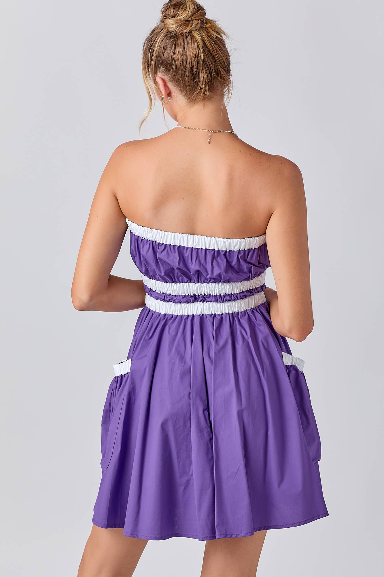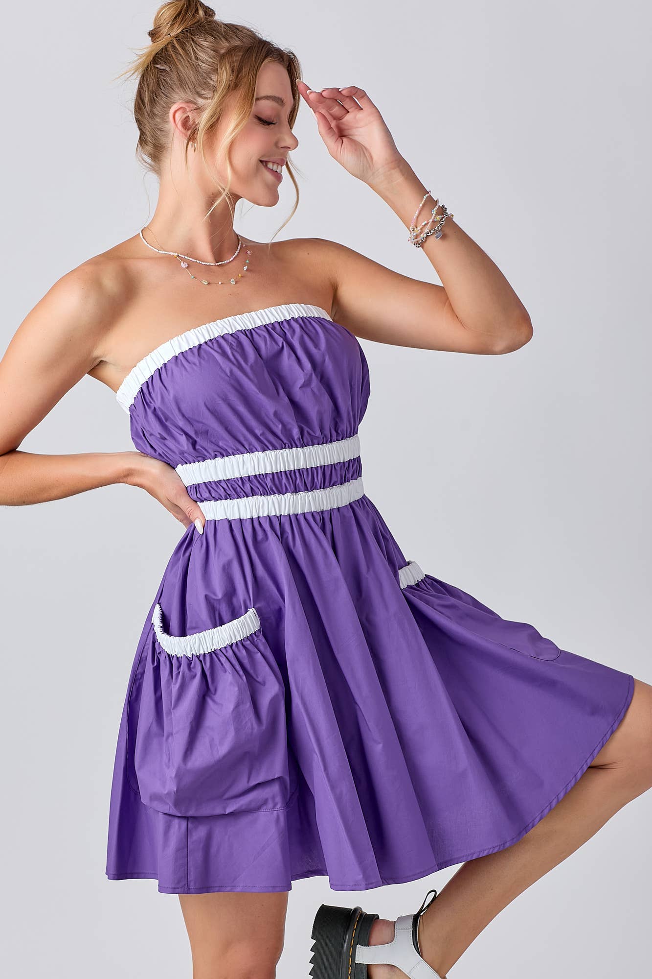 -Contrast Gathered Over Sized Pocket Tube Dress