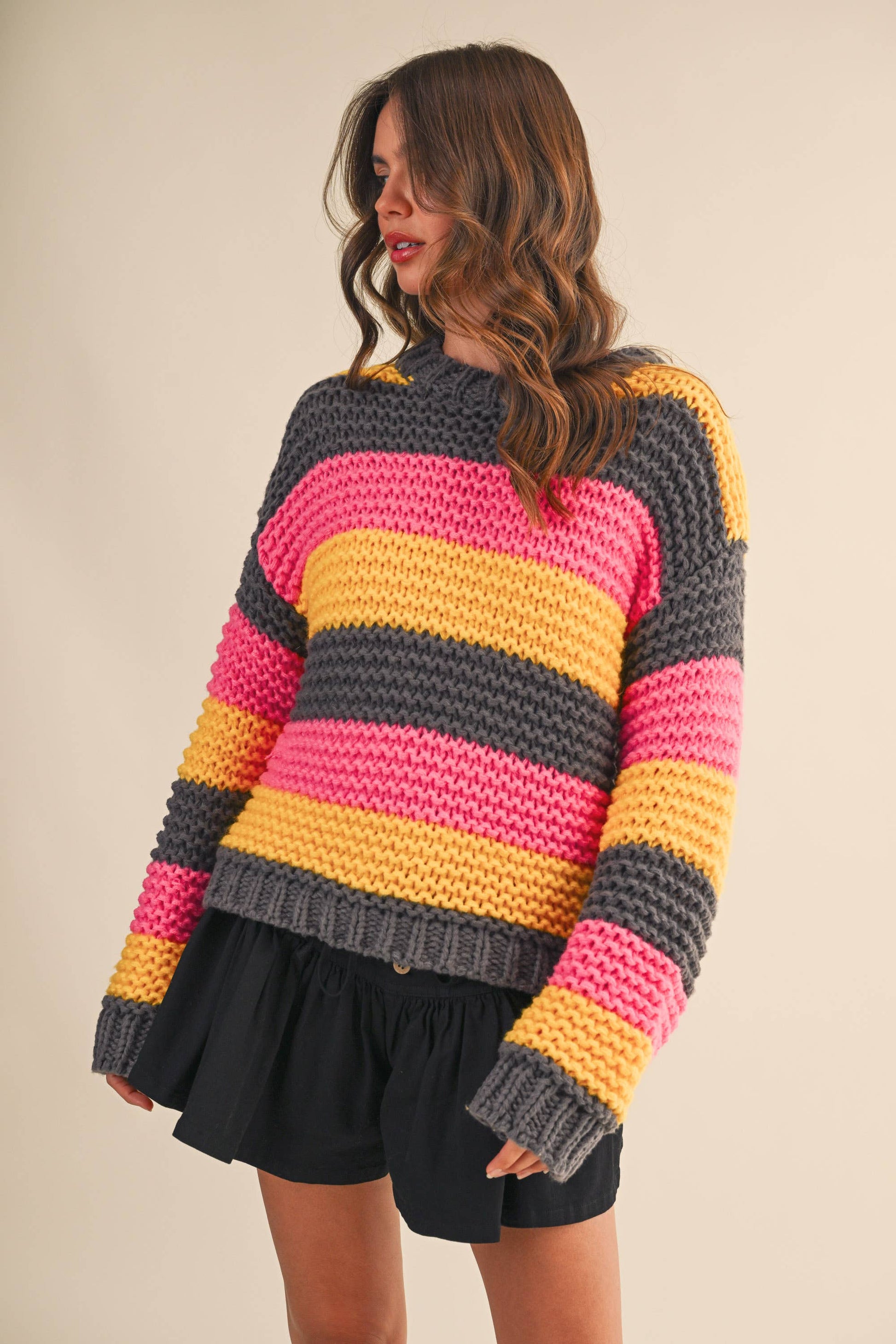 IT4431 MULTI COLOR STRIPED SWEATER KNIT TOP: Multi-Colored / S/M