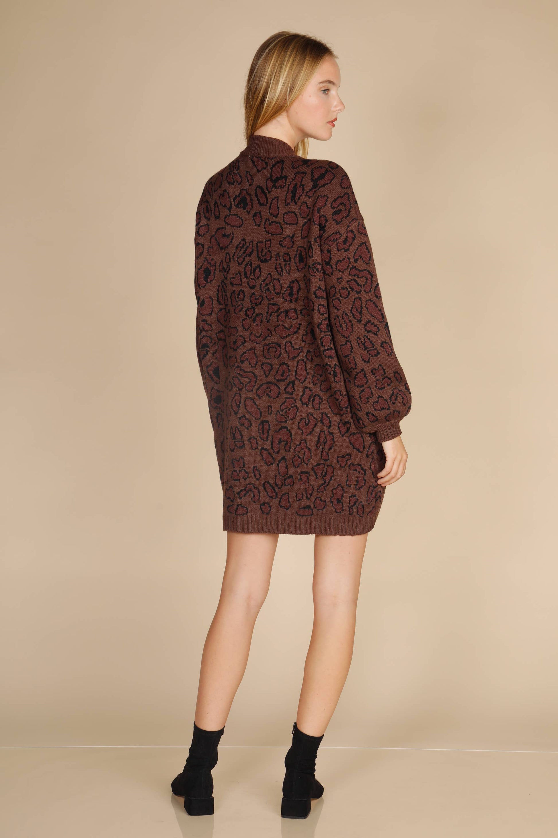 MOCK NECK ANIMAL PRINT OVERLAP KNIT WITH SHORT : Brown / L
