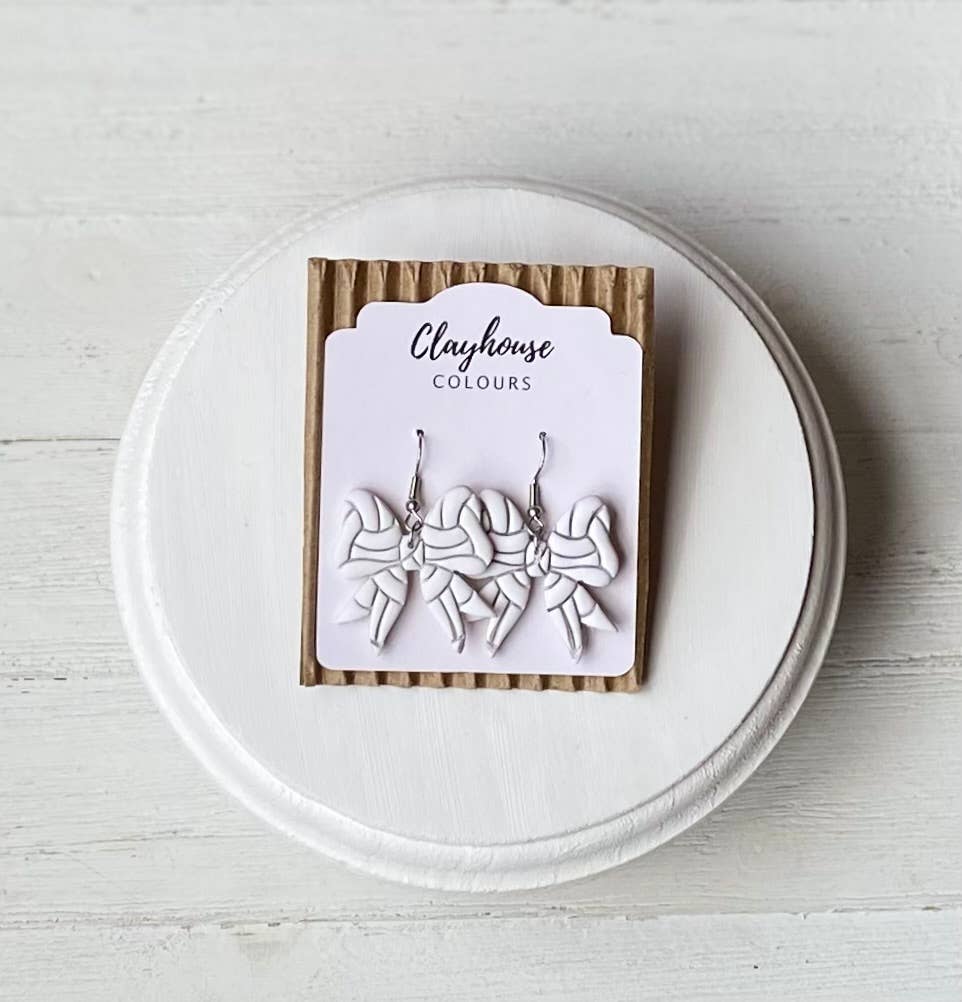 Each piece is one of a kind handmade by me. I design each piece from start to finish in my studio in TX. I cut the piece from our very own custom blended colors and bake. All of our jewelry is hand sanded with a series of fine grit sandpaper and buffed to a smooth finish. A lot of love and care goes into each and every pair!