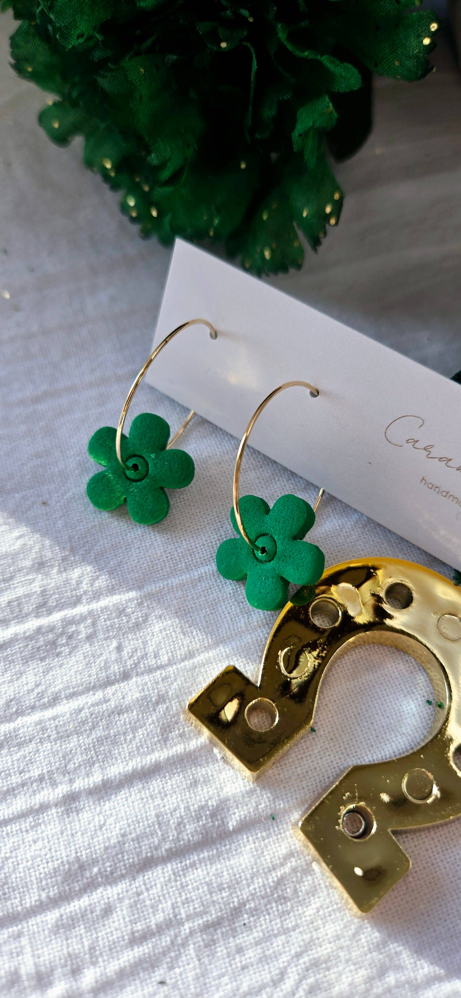 Add a little luck to your look with these handcrafted St. Patrick’s Day earrings! Featuring delicate polymer clay flowers on golden hoops, these earrings are the perfect festive accessory for celebrating Irish heritage, St. Patrick’s Day parties, or adding a touch of whimsy to your everyday style.
