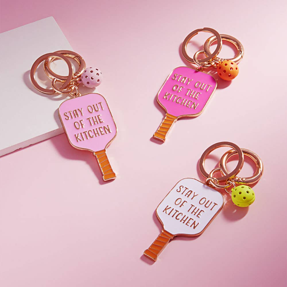 STAY OUT OF THE KITCHEN Message Enamel Pickleball Paddle Keychain / Bag Charm