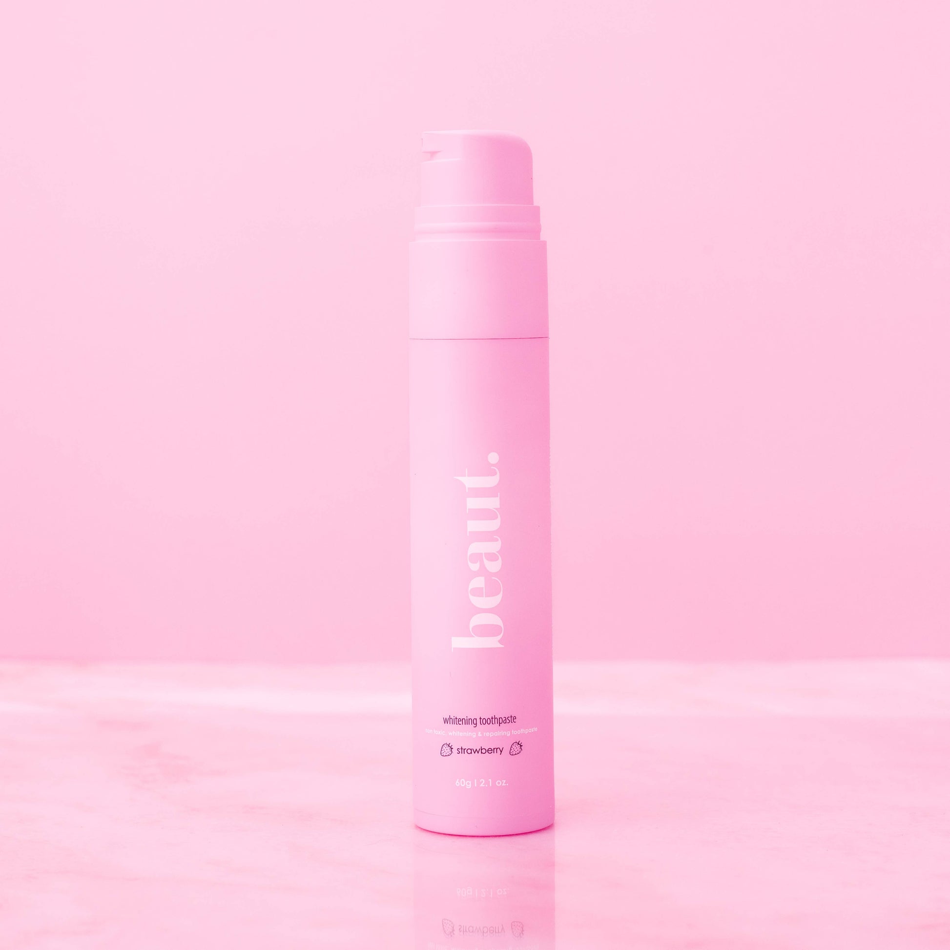 What: Non toxic, whitening & repairing toothpaste. Elevate your smile with the beaut. whitening toothpaste. Developed to protect and whiten, our signature formula is non toxic, whitening and repairing. Light, refreshing strawberry flavor that freshens breath.