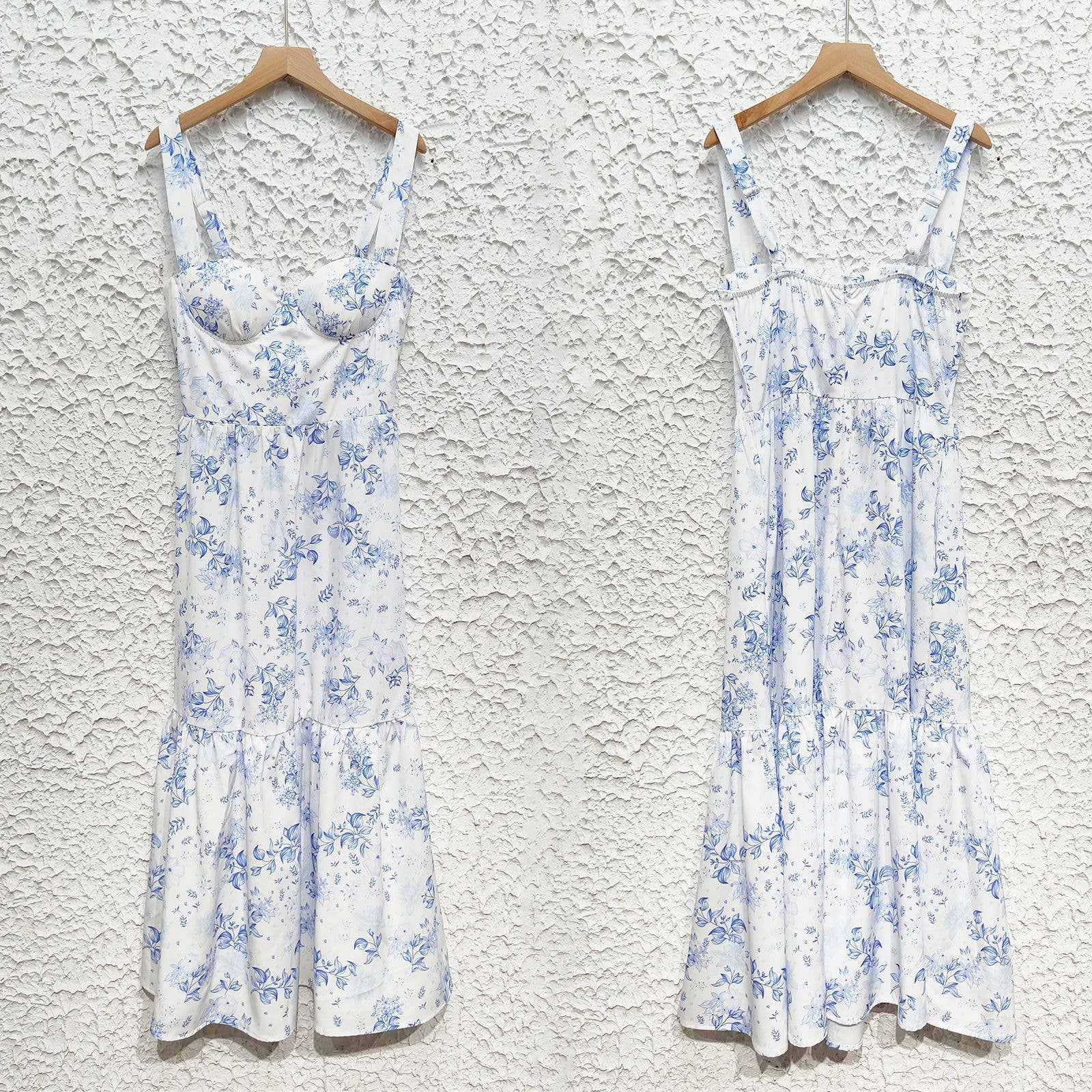 SUSPENDER FLORAL BACKLESS CAKE DRESS_RCJW00607