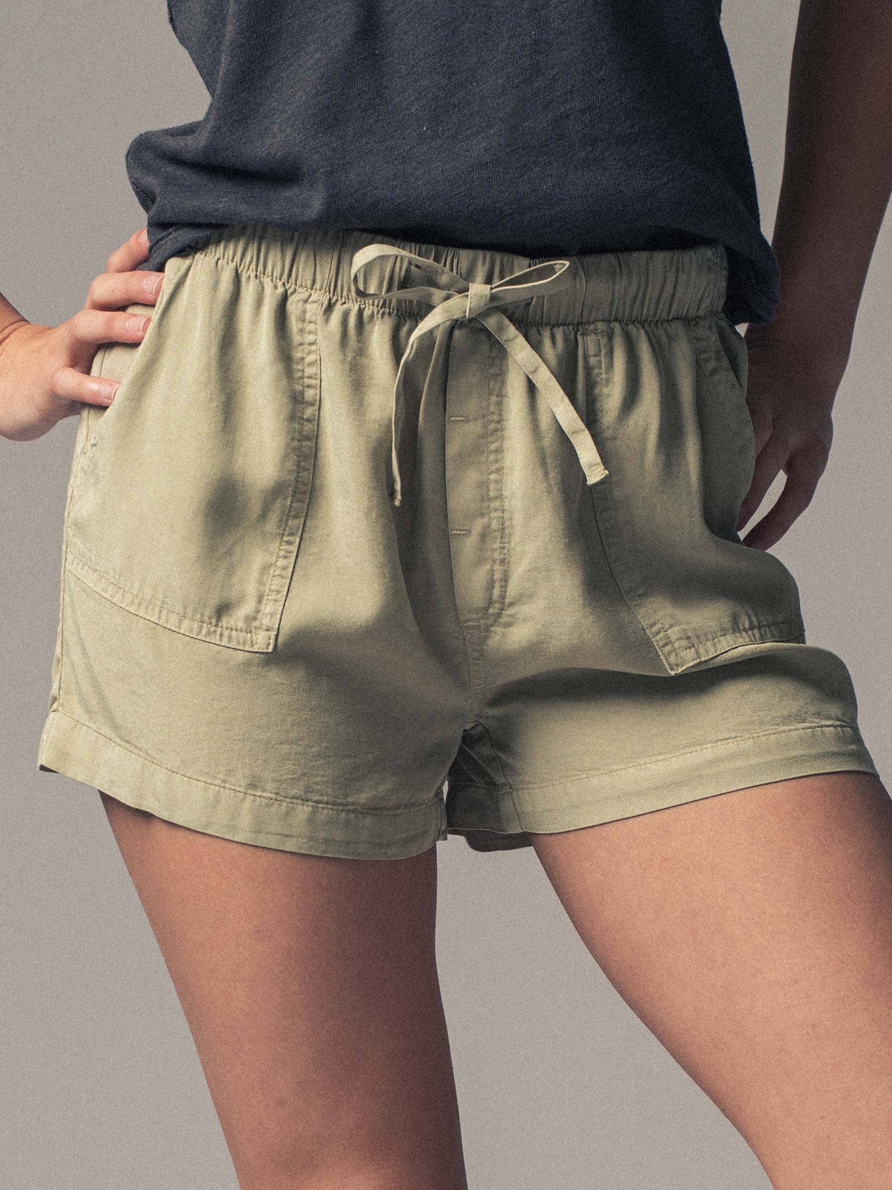 Tencel Patch Pocket Summer Shorts: OLIVE STONE / S-2/M-2/L-2