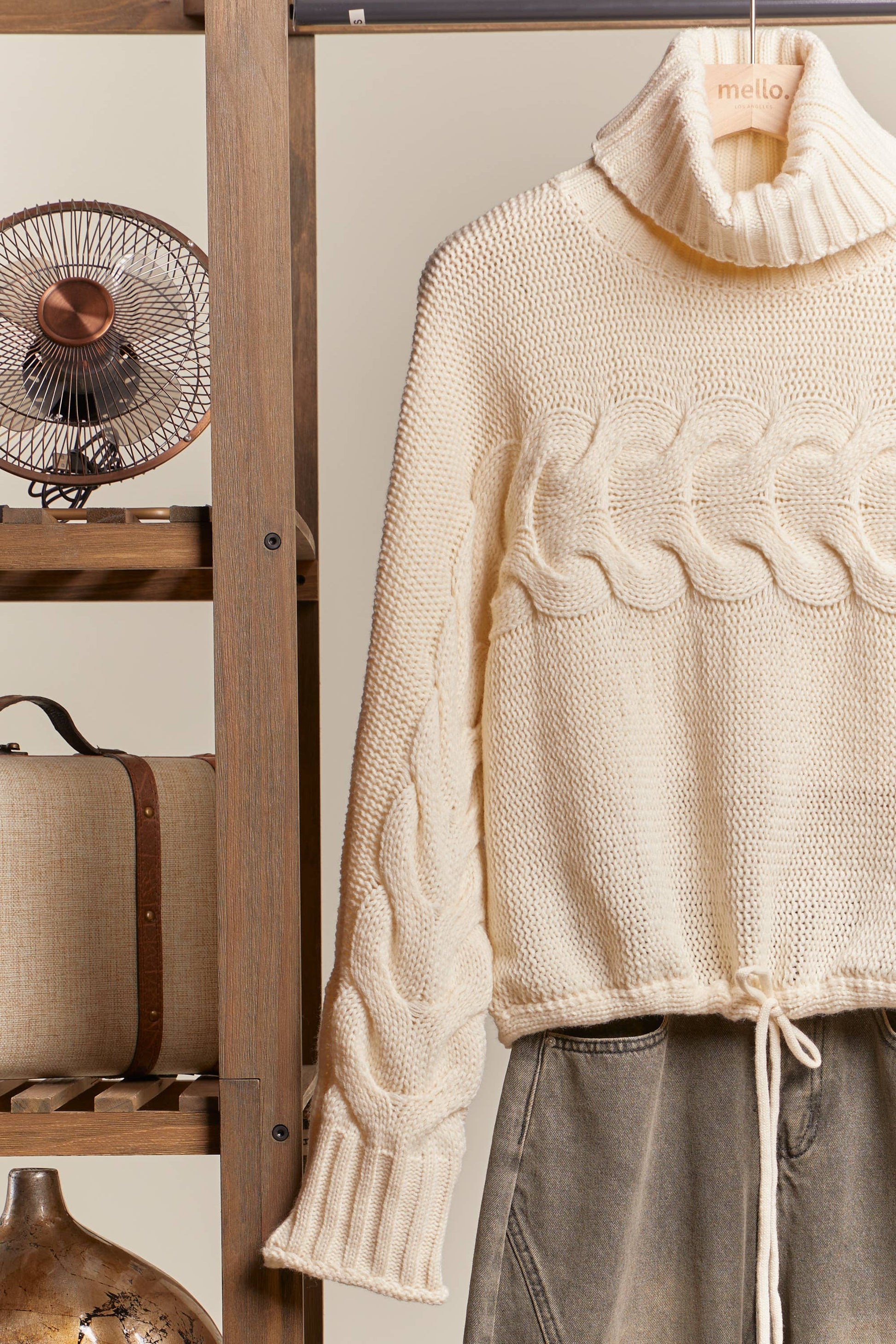 Turtle Neck Cropped Knit Sweater: Ivory / L
