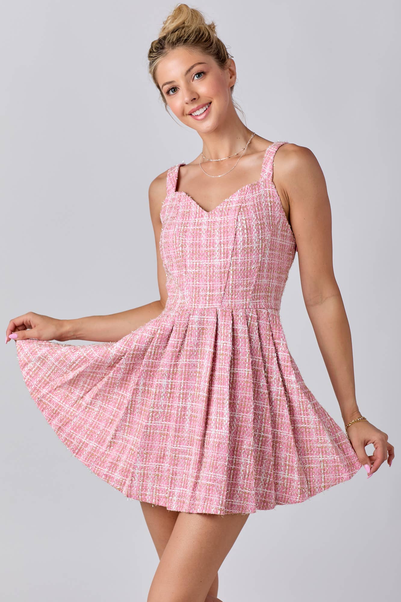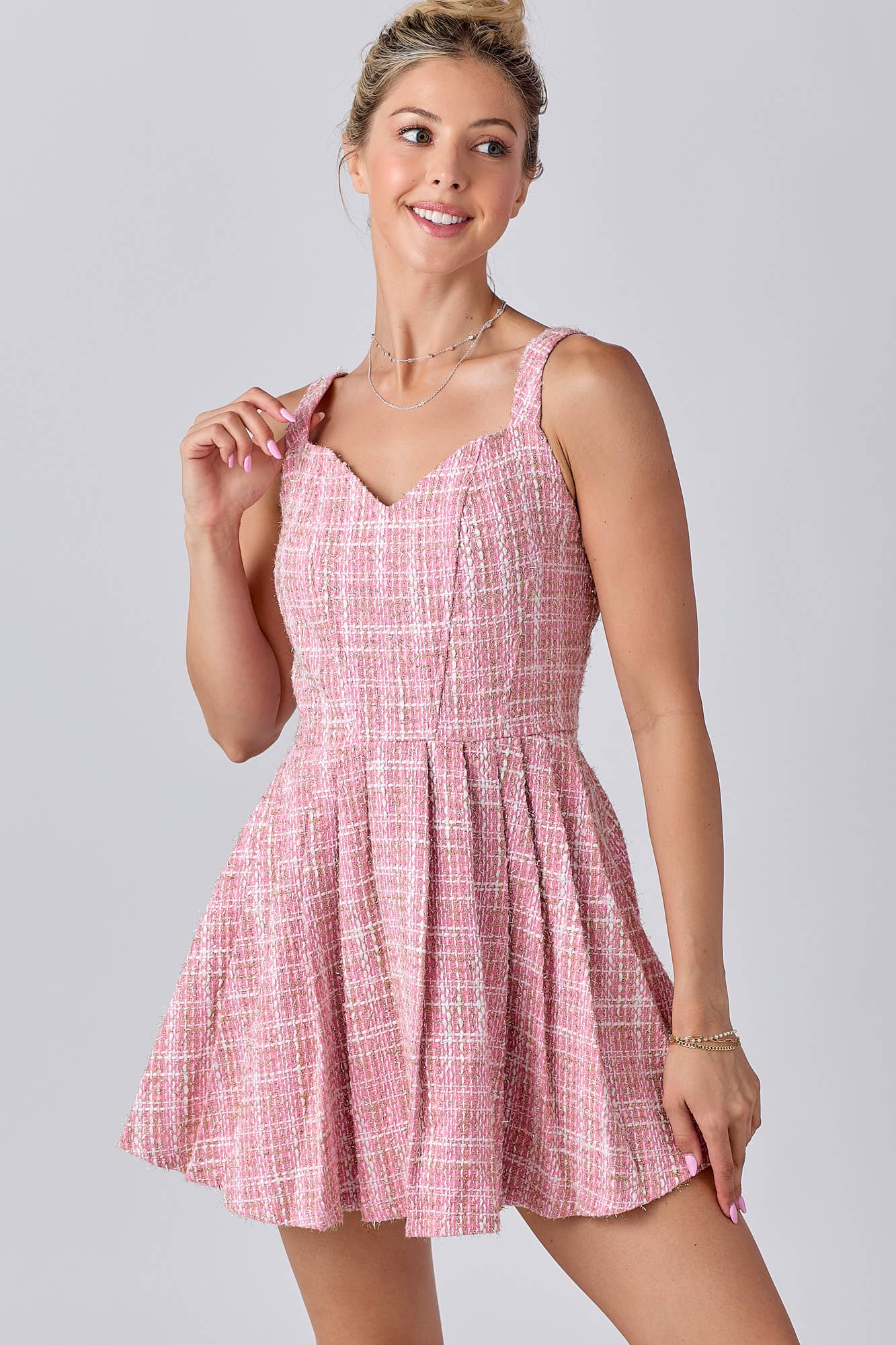 Tweed Fabric With Lurex Skort Style Romper: BLACK / S