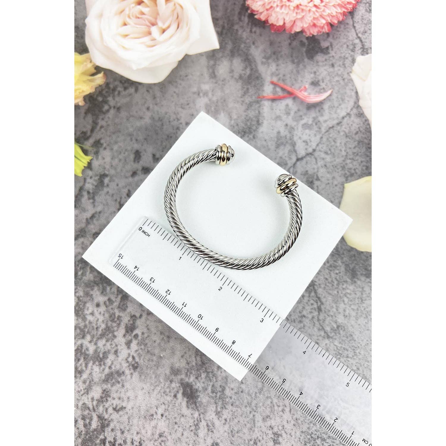 TWISTED CABLE WIRE OPEN BANGLE TWO TONE CUFF BRACELET