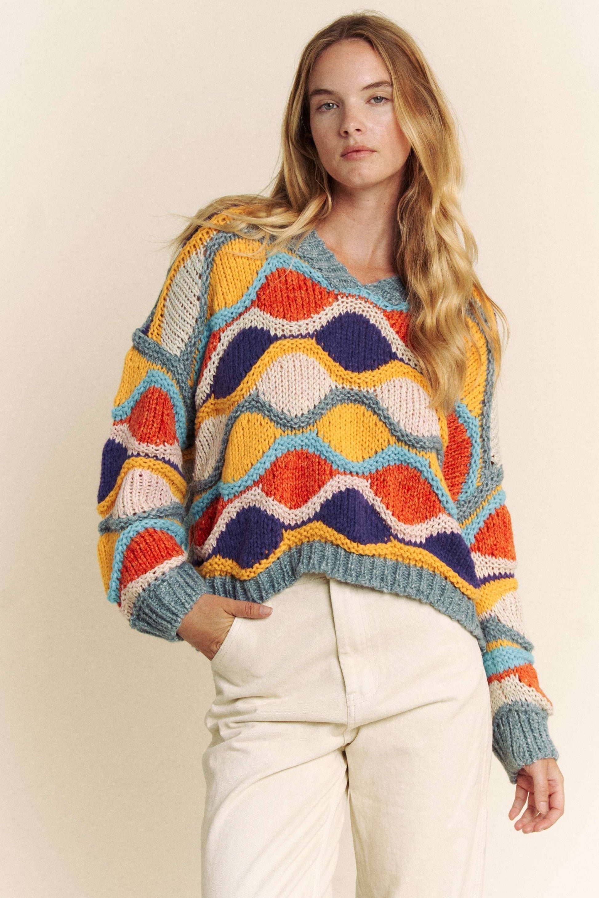 V NECK LONG SLEEVE MULTI COLOR SWEATER TOP: MULTI / L